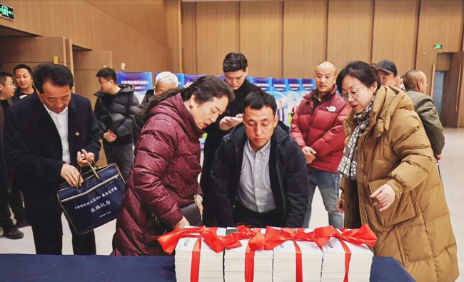 岐山县工商联主席 成君琴为荣获《补胎补到天边边》一书出版"暖心助力奖"获奖者颁奖陕西汉泰威轮胎制造有限公司 董事长 杨敏刚