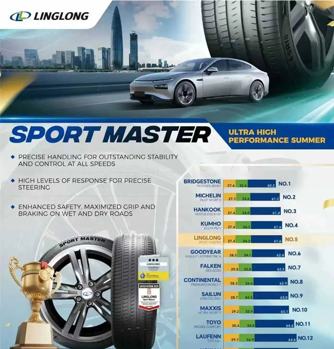 玲珑Sport Master超高性能轮胎,是唯一一款参与测试的中国轮胎。