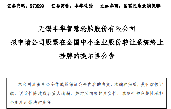 丰华轮胎计划终止挂牌新三板