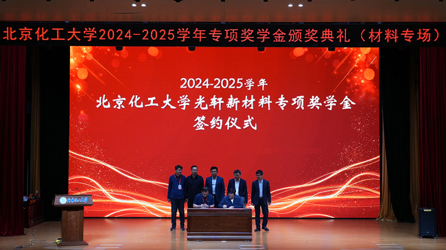 颁奖典礼上,北京化工大学-光轩新材料专项奖学金,完成签约。
